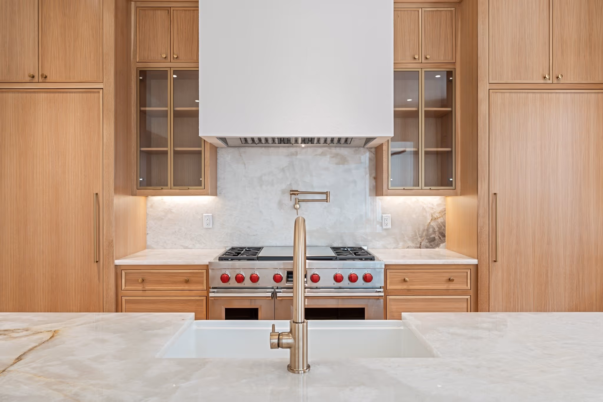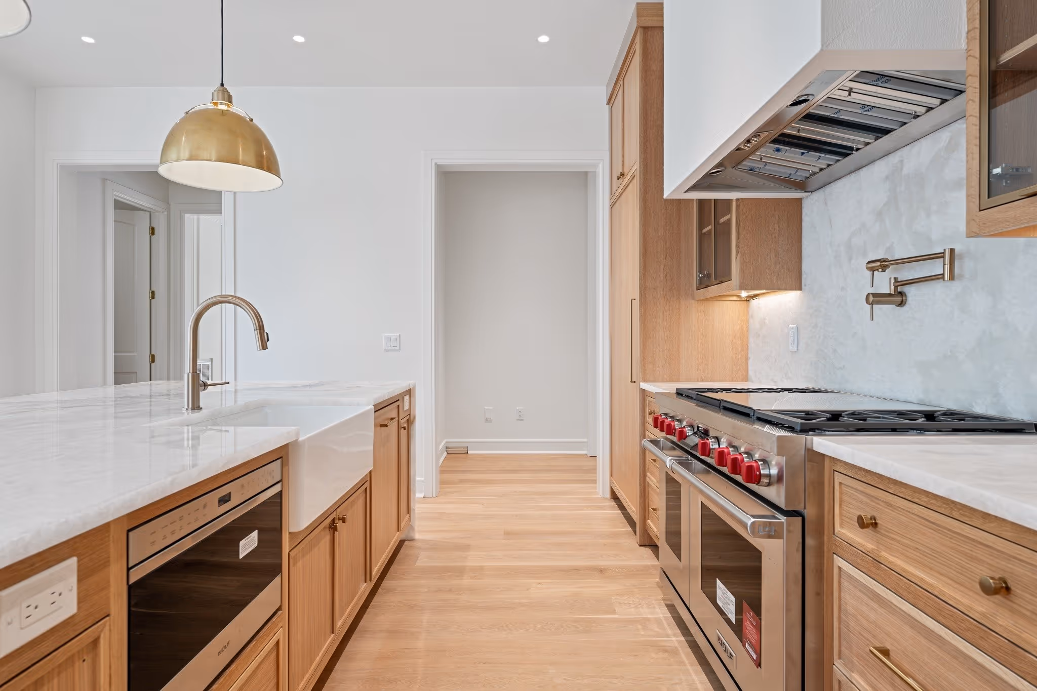 Designed to stun from the moment you step through the doors, The Grand Impression embraces scale, symmetry, and softness in equal measure. A sweeping staircase, intricate ceiling details, and floor-to-ceiling windows anchor the home’s architectural drama, while natural white oak floors, warm millwork, and marble surfaces layer in warmth and texture. From the sculptural powder room to the expansive kitchen wrapped in tailored cabinetry and stone, every detail was considered to reflect timeless elegance with a modern point of view.